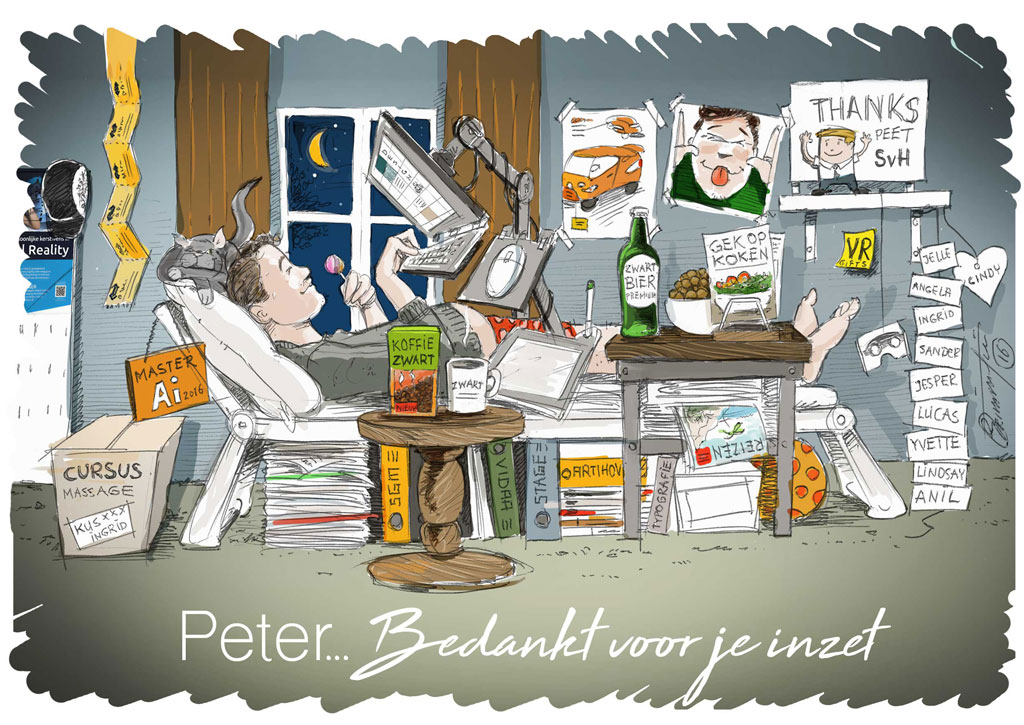 In samenwerking met u maken wij een schets van een verzameling foto’s, zijn of haar info en grappige teksten tot één leuke illustratie als een soort storyboard. Een blijvende herinnering die zeer gewaardeerd wordt!