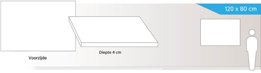 Formaat canvas: 80 x 120 x 4 cm. (dik). Zijkanten worden doorgeschilderd voor een mooi 3D effect.
